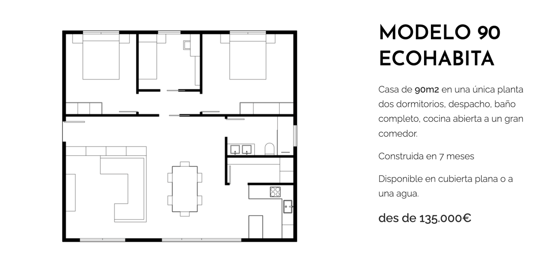 El concepto es claro: comprar una vivienda como se compra un coche. Escoges el modelo que mejor se ajusta a tus necesidades, defines los acabados y seleccionas los extras que quieras añadir. En un plazo razonable de 7 meses, recibes tu casa terminada, lista para entrar a vivir.